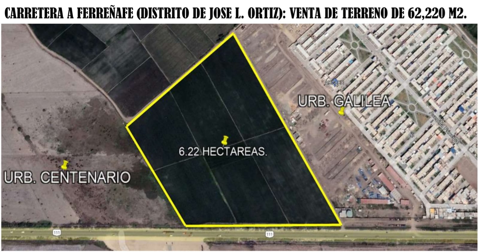 VENTA DE TERRENO DE 6.22 HECTÁREAS FRENTE A LA CARRETERA CHICLAYO - FERREÑAFE.